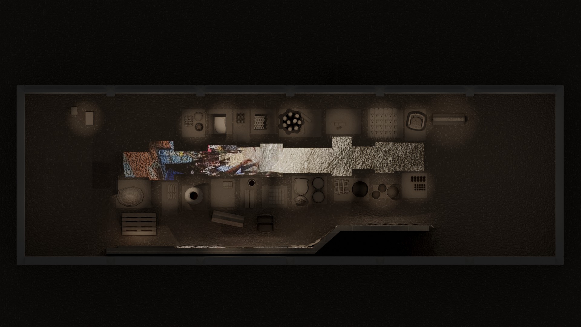 Development of 3D model for the design and production of an installation made of dust and papier mache. The model and visualisations were used for the development and tuning of the work to the scale of the venue and also for obtaining the sign off from triennale curator.